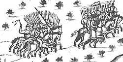 Jermak verließ Perm vermutlich im Sommer 1581 (laut Fisher[3] brach er im September 1579 auf und nahm Sibir im Oktober 1581 ein, laut Lincoln[4] brach Jermak am 1. September auf und eroberte drei Monate später Qaschliq). Er segelte den Tschussowaja hinunter und baute Winterquartiere in den Bergen und führte Angriffe gegen die einheimischen Mansen. Im Frühjahr überquerte er das Uralgebirge zum Fluss Barancha. Er baute Holzflöße, mit denen er diesen flussabwärts befuhr und die er später – als der Fluss tief genug war – zu Booten umwandelte. Auf dem Tura segelte er schließlich in Richtung Südosten und besiegte einen einheimischen Prinzen namens Epancha an dem Ort, an dem später Turinsk entstand. Die Tura weitersegelnd, eroberte er Tjumen. Am Fluss Tobol besiegten die Truppe eine einheimische Streitmacht, segelte weiter nordwärts und gewann später zwei weitere Schlachten, kurz bevor der Fluss Tawda in den Tobol mündet. Etwa 20 Meilen hinter der Tawda-Mündung schlugen sie eine weitere Schlacht und ergriffen Besitz von einem einheimischen Dorf, in dem sie eine einmonatige Pause eingelegt haben sollen.