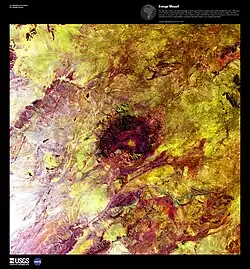 - einem prominenten halbkreisförmigen Ringdike aus tholeiitischem Dolerit von ca. 50 km Durchmesser.