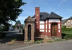 Das Bürgermeisteramt in Erp wurde, wie auch in den Nachbarorten, zur Mitte des 19. Jahrhunderts eingeführt.[46] 1865/66 entstand das Bürgermeisteramt in Erp an der Rathausstraße 34 nach Plänen des Kommunalbaumeisters Friedrich Karl Schubert aus Bonn. Es wurde als zweistöckiger Backsteinbau mit „Bürgermeisterei-Lokal und Lehrerwohnung“ errichtet.[47]