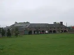 Die klassizistischen Stallungen stehen rund 20 m nördlich der Villa. Sie wurden 1811 nach einem Entwurf von John Paterson errichtet und 1899 durch Johnston and Baxter erweitert. Ungewöhnlich ist der kreisförmige Aufbau der zweistöckigen Stallungen. Ihr Mauerwerk besteht aus Steinquadern und ist von segmentbogigen Torwegen durchstoßen. Entlang der Fassaden sind 8-teilige Sprossenfenster eingelassen. Das abschließende Dach ist mit grauem Schiefer eingedeckt. Zu den Stallungen gehört ein schlanker Turm mit quadratischem Grundriss, der oktogonal fortgeführt und mit Turmuhren ausgestattet ist. Seine Öffnungen sind rundbogig ausgeführt. Er schließt mit einem Kranzgesimse mit aufsitzender Steinbalustrade.[2]