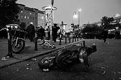 Am 1. Mai 2020 während der COVID-19-Pandemie versammelten sich mehrere tausend Menschen ohne Genehmigung. Sie folgten einem Aufruf der Initiative Revolutionärer 1. Mai.[22] Mit Straßensperren wurden von 5000 Polizeibeamten Demonstrationszüge verhindert.[23] Es kam zu Rangeleien zwischen Polizei und den Demonstranten, dem Zünden von Pyrotechnik, leichten Verletzungen und 50 Festnahmen.