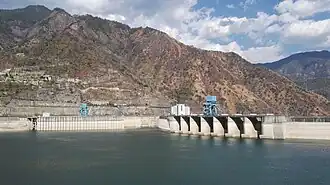 Die Talsperre hat eine Bogenstaumauer aus Beton als Absperrbauwerk. Sie liegt mit ihrer Höhe von 240 oder 245 m (es gibt verschiedene Angaben) ungefähr an Stelle 15 der höchsten Talsperren der Erde.