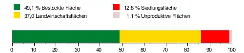 Das Einzugsgebiet besteht zu 49,1 % aus bestockter Fläche, zu 37,0 % aus Landwirtschaftsfläche, zu 12,8 % aus Siedlungsfläche und zu 1,1 % aus unproduktiven Flächen.