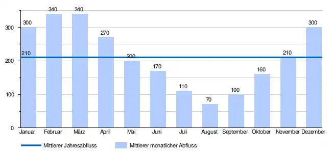 - ↑ a b Mittlere Abflüsse (m³/s) und Abflussregimetyp für das Gewässernetz der Schweiz. Bundesamt für Umwelt (BAFU).