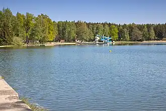 Im Gelände des Bades gibt es einen durch massive Stege abgetrennten 50-m-Schwimmbereich und eine Wasserrutsche. Es gibt einen Volleyballplatz und massive Tischtennisplatten. Außerhalb der mit Bojen abgegrenzten, für den Badebetrieb freigegebenen Wasserfläche hat sich ein Verleih mit Ruderbooten und Tretbooten angesiedelt. Darüber hinaus bietet der umliegende Freiwald weitere Möglichkeiten zur Naherholung.