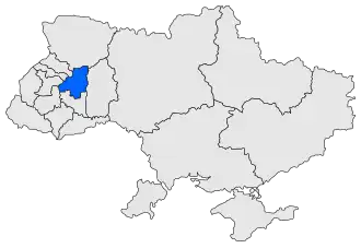 Die Erzeparchie Ternopil-Sboriw umfasst die Oblast Chmelnyzkyj und den nördlichen Teil der Oblast Ternopil. Das Gebiet ist im mittleren Teil der Karte hellblau dargestellt.