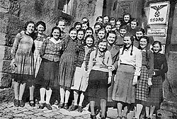 Manche Themen aus dem Schulalltag sind bisher seltener oder nur beiläufig behandelt bzw. untersucht worden. Dass die HJ- bzw. BDM-Erziehung als eigenes paralleles Standbein neben der Schule eine gewichtige Rolle im NS-Erziehungskonzept spielte, wurde oft und in eigenen Monografien thematisiert.[27] Ein wichtiger Nebenaspekt für die kommunale Verwaltung wird kaum erwähnt. Die HJ- und die BDM-"Mädel" ruinierten oft genug die Einrichtung in den Schulen, wo sie immer wieder tagen mussten, weil anderenorts geeigneter Raum nicht zur Verfügung stand. Sie benahmen sich oft rücksichtslos und vandalierten in den Schulräumen. Die Verwaltungen kämpften in den meisten Fällen vergebens gegen die oft arrogante HJ-Führung. Die städtische Verwaltung musste das schlucken, waren doch ihre Verantwortlichen fast alle selber Parteimitglieder.[28]