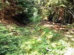 Der sich anschließende, rechtsseitig der Mulde liegende Abschnitt lässt sich anhand der Vegetation im Gelände verfolgen, ist jedoch gänzlich verfüllt.