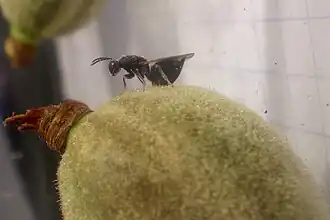Eurytoma amygdali auf einer Mandel | ||||||||||||
