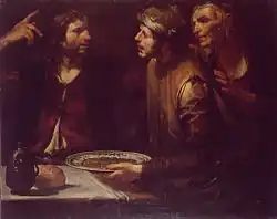 Eine Feder- und Pinselzeichnung um 1648–50 von Rembrandt van Rijn[1] zeigt Esau, welcher mit Jakob ein Linsengericht gegen sein Erstgeburtsrecht tauschte.