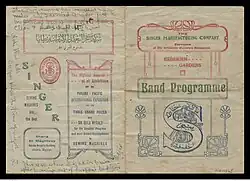 Der Garten enthielt noch einige andere Attraktionen. Dazu gehörten zwei Musikpavillons, einer für Militärmusik und einer für bürgerliche Musik, in denen bei Sonnenuntergang, wenn die Menschen Abkühlung suchten, Konzerte gegeben wurden.[49] Nach Vaujany, der die Situation um 1883 beschreibt, spielte die Militärkapelle täglich von vier bis neun Uhr abends europäische und türkische Musik.[51] Nach Rohlfs’ Beschreibung handelte es sich um ein „ausgezeichnetes Militärorchester“, das „europäische Symphonien und Stücke“ spielte und „arabische Weisen“, die ihn „ungemein an Wagner'sche Compositionen“ erinnerten.[63] Außerdem gab es in dem Park ein europäisches und ein arabisches Café-chantant, das bereits erwähnte Freilichttheater und einen chinesischen Pavillon.[49] In dem arabischen Café-chantant konnte man abends arabische Romanzen hören, die von einheimischen Instrumenten begleitet wurden.[51] Hier traten berühmte ägyptische Sänger auf wie ʿAbduh al-Hamūlī (gest. 1901).[64]