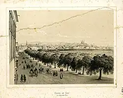 Olympe Audouard klagte außerdem darüber, dass die Promenade am Abend „erschreckend dunkel“ war: Wenn der Mondschein eine Pause einlege, könne man keine zwanzig Schritte tun, ohne gegen einen Baum zu stoßen, in ein Loch oder auf einen Schutthaufen zu fallen.[43]