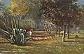 Für Europäer blieb der Esbekieh-Platz dennoch ein romantischer Ort. Als sich zwischen 1831 und 1833 der französische Orientalisten-Maler Prosper Marilhat in Ägypten aufhielt, malte er den Platz mit seinen Bäumen. Das Bild mit dem Titel La place de l’Esbekieh au Caire wurde 1834 auf dem Salon de Paris gezeigt und hatte eine große Wirkung auf den französischen Schriftsteller Theophile Gautier.[22] Er schrieb im Juli 1848 in der Revue des Deux Mondes über dieses Bild: