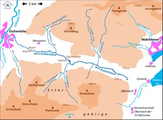 | Ursprung | 1,4 km westlich von Kochel am See-Einsiedl 47° 34′ 20″ N, 11° 17′ 16″ O | |