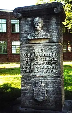 1899 beginnt in einer zweiten Bauphase der endgültige Ausbau des südlichen und östlichen Teils dieses Stadtviertels und wird das Gebiet um „Verbindungsstraße“ (heute: „Bismarckstraße“) und „Kaiserallee“ (heute: „Kaiserstraße“) bebaut. Gleichzeitig wird im Bereich der Altstadt mit der Bebauung nördlich der „Dürener Straße“ begonnen: „Peter-Paul-Straße“, „Parkstraße“, „Gartenstraße“ und „Kolpingstraße“. 1902, als Eschweiler rund 22.000 Einwohner zählt, wird Ludwig Carbyn Bürgermeister. In seiner bis Oktober 1910 dauernden Amtszeit fällt eine weitere Welle öffentlicher und repräsentativer Gebäude – auch in der südlichen Innenstadt: Ostern 1905 findet die erste Abiturprüfung der Stadt Eschweiler und des Kreises Aachen in der „Grabenstraße“ statt. Am 10. Januar 1907 wird der Neubau des Amtsgerichts Eschweiler in der „Kaiserstraße“ eröffnet. 1909 werden das Reichsbankgebäude und die Städtische Volksbücherei eröffnet. Am 4. Oktober 1910 wird das Kriegerdenkmal in der „Moltkestraße“ unter Teilnahme von 70 Vereinen eingeweiht. Es muss am 20. November 1964 im Zuge der Straßenneugestaltung einem kleinen Parkplatz weichen.