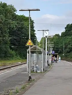 - ↑ Stationsqualität 2014. (PDF; 3,70 MB) Qualität der Verkehrsstationen des Schienenpersonennahverkehrs (SPNV) im Gebiet des Zweckverbands Nahverkehr Rheinland 2014. Nahverkehr Rheinland, Juni 2015, S. A10, archiviert vom (nicht mehr online verfügbar) am 30. Juli 2016; abgerufen am 30. Januar 2016.