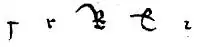 R: Vier primäre Schreibarten bildete dieser Buchstabe aus: Stand ein „R“ am Beginn des Wortes, dann wurde es zu einem doppelten „R“ gemacht. Dafür verwendete man ein nicht mehr gebräuchliches Zeichen, das vage an eine Kreuzung aus V und R erinnert. Ansonsten konnte es als typisches „r“ oder ähnlich einem „z“ geschrieben werden. Die vierte Form wird auch als martillo (= span. für „Hammer“) bezeichnet. Der Name leitet sich von der an einen Hammer erinnernden Schreibweise ab.