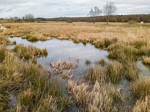 ![]() Renaturiertes Eselsbett-Moor im Naturschutzgebiet Eselsbett und Schwarzes Bruch (Februar 2020) | ||