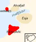 Besonders auffallend ist der Berg Kistufell, der am meisten nach Süden vorragt und etwa auf der Höhe von Mosfellsbær liegt.[3]