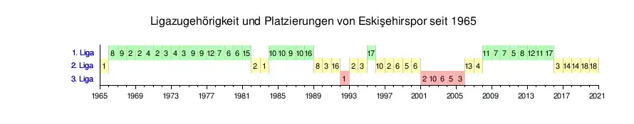 Eskişehirspor ist ein Sportverein aus der türkischen Stadt Eskişehir der gleichnamigen zentralanatolischen Provinz. Der Verein wurde im Jahr 1965 gegründet. Seit seiner Gründung spielte er mit Unterbrechungen insgesamt 30 Spielzeiten in der Süper Lig, der höchsten türkischen Liga. In der Ewigen Tabelle der Süper Lig liegt Eskişehirspor auf dem 10. Platz.[1] Der Verein hat die Vereinsfarben rot und schwarz, die Mannschaft trägt den Spitznamen Kırmızı Şimşekler, die roten Blitze.[2]