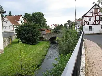 ![]() Der Essebach in Elbersdorf oberhalb der Brücke Blaubach | ||
