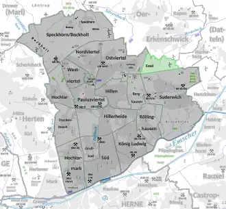 - ↑ Digitaler Stadtplan mit Stadtteilgrenzen, Stadt Recklinghausen