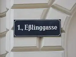 Die Esslinggasse (vor der Neuen Rechtschreibung Eßlinggasse) befindet sich im 1. Wiener Gemeindebezirk, der Inneren Stadt. Sie wurde 1869 zum Gedenken der Schlacht bei Aspern aus der Zeit der Koalitionskriege benannt, bei der es 1809 gelang, Napoleon eine erste Niederlage zuzufügen. Diese Schlacht wurde in der Nähe des Ortes Essling, seit 1938 Teil von Wien, geschlagen.