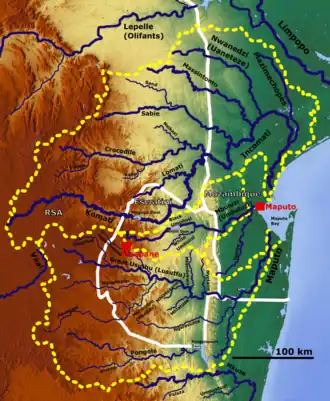 Hydrologisch ist das Land in vier Einzugsgebiete aufgeteilt. Sein gesamter Niederschlag entwässert über diese nach Osten in die Maputo-Bucht. Der Norden, mit 2500 km² und 14 % der Landesfläche, fließt über den Komati ab, der das Land streift. In der Mitte und im Osten entspringen die Quell- und Nebenflüsse des Mbuluzi mit über 10 % der Fläche. Der gesamte Süden entwässert in den Maputo, dessen Einzugsgebiet mit etwa 12.000 km² 69 % der Landesfläche ausmacht. Im äußersten Osten gibt es einen kleinen Teil, der über den Tembe abfließt.