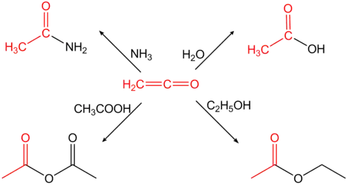 Ethenon dient zur Herstellung von Essigsäureanhydrid aus Essigsäure. Allgemein es wird zur Acetylierung von chemischen Verbindungen verwendet.[11]
