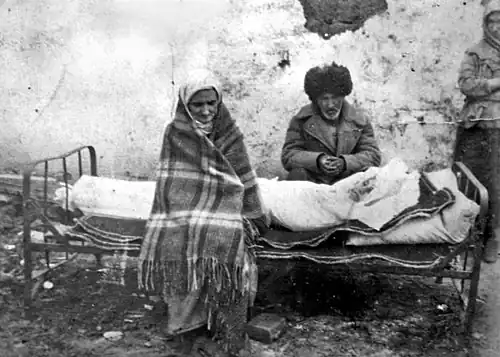 Nach Beschluss über die Aussiedlung von ungefähr 45.000 Personen aus den grenznahen Gebieten der Ukraine nach Kasachstan im April 1936 wurden die so genannten Sonderumsiedler (russisch: spezpereselenzy, wörtlich: Spezialumsiedler) gewaltsam in Zugwaggons getrieben und über eine Dauer von drei bis vier Monaten bis nach Kasachstan transportiert. Hinter Kustanaj hielten die Züge in offener Steppe. Die bewaffnete Begleittrupps sprangen aus den Zügen, steckten eine rote Fahne auf, warfen ein paar Zelte aus den Waggons und befahlen hundert Personen des Zugtransports, fortan dort zu „leben“. Der Zug mit den restlichen Deportierten fuhr anschließend weiter. Diese Prozedur wiederholte sich alle 15–20 Kilometer. Mindestens 100.000 Deportierte fanden aufgrund dieser von staatlicher Seite bewusst herbeigeführten unzulänglichen Versorgungsstrukturen im ersten Winter den Tod in der kasachischen Steppe.