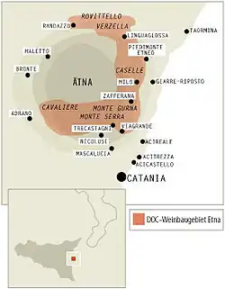 - ↑ Salvo Foti: Etna. I vini del vulcano, Giuseppe Maimone Editore, S. 18, 2. Aufl. 2012, ISBN 978-88-7751-343-4