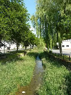 Durchfließt auf knapp 457 m ü. NHN am Südostrand der Erlen im Gewann See einen Weiher, 0,6 ha.