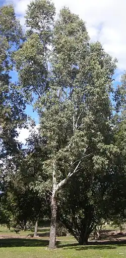 - ↑ a b c d e f g h Eucalyptus raveretiana bei EucaLink - A Web Guide to the Eucalypts. ( des vom 18. April 2016 im Internet Archive) Info: Der Archivlink wurde automatisch eingesetzt und noch nicht geprüft. Bitte prüfe Original- und Archivlink gemäß Anleitung und entferne dann diesen Hinweis. Abgerufen am 5. März 2013.
