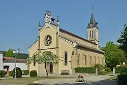 Die neugotische Kirche wurde im Jahre 1869 nach Plänen des Architekten Dupouy errichtet. Ihr Langhaus mit drei Kirchenschiffen wird mit einem flach abgeschlossenen Chor verlängert, der von Nebenräumen flankiert wird. An die Ostwand der Apsis ist der Glockenturm gebaut mit seinen rundbogenförmigen Zwillingsfenstern und seinem mit Schiefer gedeckten, polygonalen Helm. Die Westfassade hingegen ist durch das Eingangsportal unterbrochen, das als Spitzbogen mit Archivolten ausgestaltet ist. Die Fassade wird außerdem durch eine große Fensterrose, Fialen und eine Uhr verschönert. Die Seitenschiffe werden durch spitzbogenförmige Fenster an der Nord- und Südseite und durch ein spitzbogenförmiges, mit weißen Steinen betontes Fenster an der westlichen Fassade mit Licht versorgt.[7]