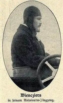 Danach war er Teilnehmer zahlreicher weiterer Flugwochen und Luftfahrtschauen wie zum Beispiel in Budapest und Berlin. Außerdem führte er seine Flugkünste zahlreichen berühmten Persönlichkeiten vor. Für Napoleon Bonaparte, König von Italien flog er beispielsweise um den Mailänder Dom. Zurück in Deutschland stellte Wiencziers bei der dritten Berliner Flugwoche 1910 einen Höhenrekord von 1560 m auf.[7] Im September 1910 überquerte er mit seiner 60 PS starken Antoinette die Alpen und landete in Mailand.[8] 1911 war er Teilnehmer des Deutschlandfluges.[9]