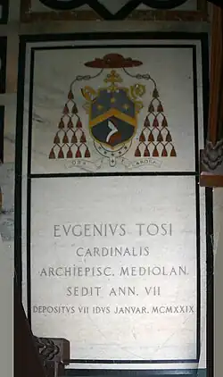 Kardinal Tosi starb am 7. Januar 1929 in Mailand und wurde im Mailänder Dom beigesetzt.