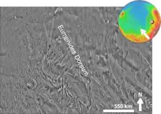 - ↑ The Euminedes Dorsum mountains on Mars (ESA)