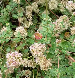 Ein „El Segundo Blue“ (Euphilotes battoides allyni) an Blüten seiner Partnerpflanzenart Eriogonum parvifolium | ||||||||||||