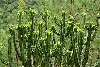 Euphorbia royleana ist im Nordosten von Indien verbreitet.