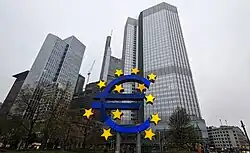 Die Euro-Skulptur ist ein in zwei Exemplaren ausgeführtes Kunstwerk von Ottmar Hörl. Die 14 Meter hohe und 50 Tonnen schwere Leuchtreklame zeigt ein monumentales blaues Eurozeichen, das von zwölf gelben Sternen umgeben ist, den Farben der Europäischen Union.[1] Die Euro-Skulptur ist ein oft fotografiertes Objekt in der Frankfurter Innenstadt und findet sich auch als Illustration in Berichten über den Euro.