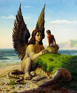 In Tolkiens Buch Der kleine Hobbit findet sich dieses Motiv des Ratespiels, als Bilbo in der Orkhöhle auf Gollum trifft. Hierbei geht es darum, dass Bilbo, falls er siegt, von Gollum nicht verspeist wird und dieser ihm den Weg zum Ausgang zeigen soll.[21]:85–98 Diesen Rätselwettstreit vergleicht Greg Harvey in seinem Buch The Origins of Tolkien’s Middle-earth For Dummies mit der Geschichte des Königs Ödipus und den Rätselfragen der Sphinx. Auch hier geht es darum die Fragen richtig zu beantworten, um nicht von der Sphinx getötet zu werden. Eines dieser Rätsel lautete in beiden Fällen sehr ähnlich.[22]
