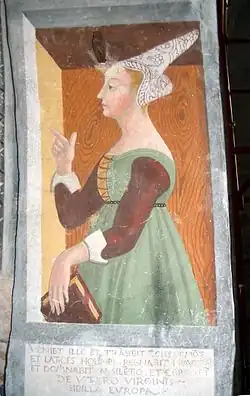 Obwohl in der Kunst der Gotik und Renaissance Sibyllen ein häufig anzutreffendes Motiv sind, so wird in den Gruppen von Sibyllen die Europäische sehr selten dargestellt. Ab und zu findet man sie jedoch, so z. B. an folgenden Orten: