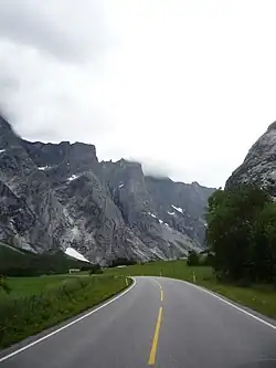 Die Straße bildet die wichtigste Verbindung zwischen den Fylker Innlandet und Møre og Romsdal.[2] Sie verläuft von Dombås in der Kommune Dovre parallel zur Raumabahn im Tal des Flusses Lågen bis zur Wasserscheide und dann weiter im Tal der Rauma, die bei Åndalsnes den Romsdalsfjord erreicht. Sie folgt weiter dem Südufer des Romsdalsfjords und vereinigt sich bei Brastad rund 7 km südlich von Vestnes mit der Europastraße 39, mit der sie gemeinsam bis auf die Insel Aspøy im Zentrum von Ålesund verläuft.