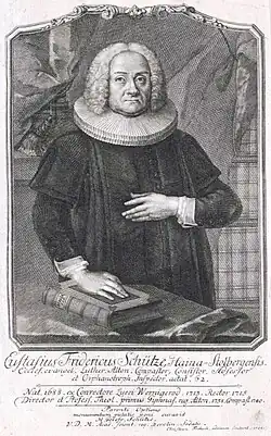 - Schütze, Eustachius Friedrich. In: Johann Heinrich Zedler: Grosses vollständiges Universal-Lexicon Aller Wissenschafften und Künste. Band 35, Leipzig 1743, Sp. 1403 f.