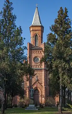 In den Jahren 1877–1881[8][9] (nach anderen Quellen in den Jahren 1882–1884)[10][11] wurde eine neue Kirche aus Backstein gebaut, die von Franciszek Tournelle im neugotischen Stil entworfen wurde. Der Bau wurde 1884 endgültig abgeschlossen.[6][3] 1881 wurde die ehemalige St.-Adalbert-Kirche abgerissen.[12]