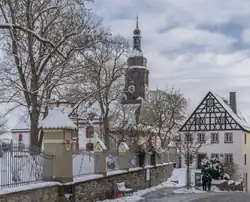 - Hospitalkirche mit dem Feilitzscher Gemeindeteil Zedtwitz und der dortigen Friedenskirche