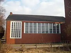 An der Straßenseite im Südwesten ist im mittleren Bereich ein fünfeckiges weißes Feld mit neun schmalen Fenstern in Buntglas angebracht, das hoch bis in den Giebel reicht. Die Fenster an den beiden Langseiten sind farblos. An der Nordwestseite befinden sich in halber Höhe schlichte rechteckige Fenster, die zur Nordecke hin weiter nach unten reichen und dort ebenfalls in ein weißes Feld eingebunden sind. Während an der Südostseite hochsitzende Fenster den Innenraum erhellen, ist die Nordostseite, an der die Kanzel steht, fensterlos.