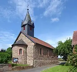 Die Saalkirche wurde 1891 aus Bruchsteinen gebaut. An das Kirchenschiff schließt sich im Osten eine halbrunde Apsis an. Aus dem Satteldach des Kirchenschiffs erhebt sich ein schiefergedeckter, quadratischer Dachreiter, der mit einem achtseitigen spitzen Helm bedeckt ist.