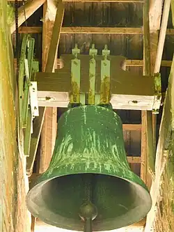 Der Glockenturm gehört zum sogenannten Parallelmauertyp mit Satteldach.[16] Er stammt aus dem 17. Jahrhundert. Die ältere Glocke wurde um die Mitte des 17. Jahrhunderts, die jüngere in den 1960er Jahren gegossen.[17]
