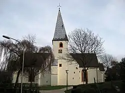 Die Kirche war ursprünglich dem hl. Paulus geweiht. Der kreuzförmige Saalbau ist durch eine neugotische Erweiterung einer romanischen Saalkirche mit einem aus der Mittelachse nach Süden verschobenem Westturm entstanden. Ein durch Grabung erwiesener, ungewölbter Bau wurde im 12/13. Jahrhundert durch die im Kern bestehende Kirche ersetzt. Der Turm mit niedrigen, später veränderten Annexräumen ist möglicherweise älter. Das Südportal ist mit 1603 bezeichnet. Das Chorjoch wurde Mitte des 14. Jahrhunderts, das Schiffjoch am Ende des 15. Jahrhunderts neu gewölbt. 1887 erfolgte eine kreuzförmige Erweiterung, zur selben Zeit wurden die Schallarkade verändert. Das Gebäude wurde von 1979/80 umfassend renoviert.